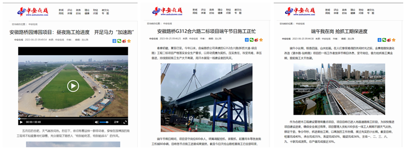 【名媒聚焦】中安在線、《合肥新聞聯(lián)播》等媒體聚焦公司園博園項(xiàng)目、G312合六路二標(biāo)等重點(diǎn)項(xiàng)目建設(shè)