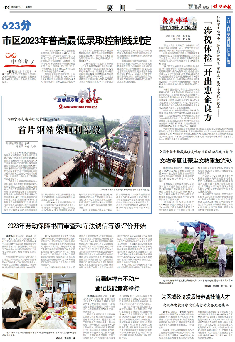 名媒聚焦|蚌埠日?qǐng)?bào):G36寧洛高速蚌明改擴(kuò)建01標(biāo)項(xiàng)目——首片鋼箱梁順利架設(shè)