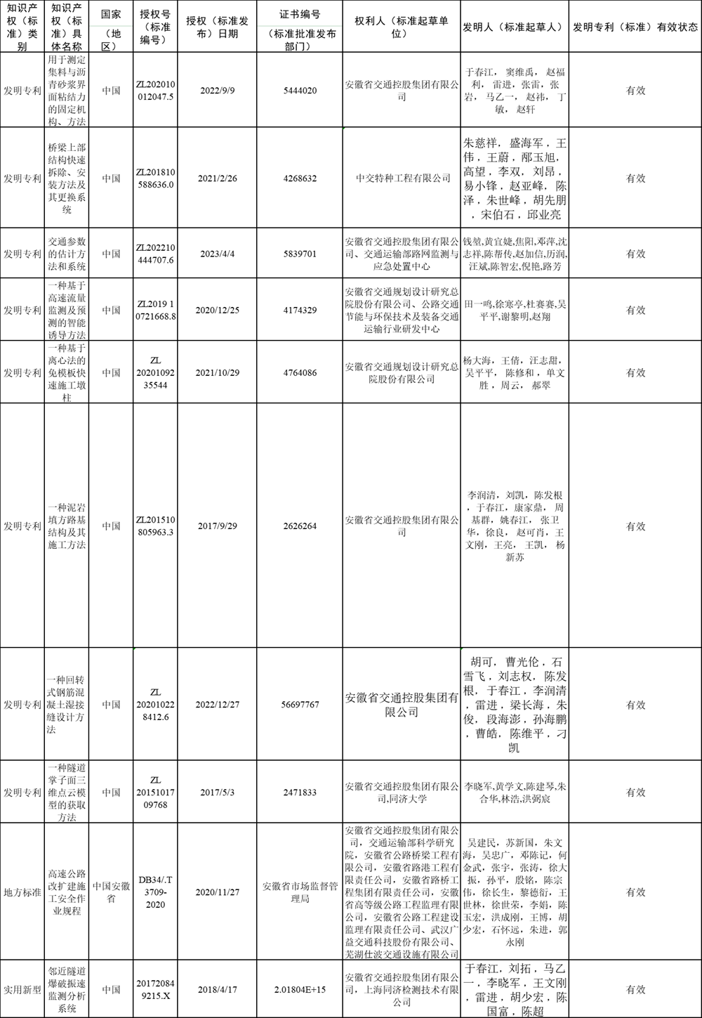 安徽省交通控股集團有限公司、安徽省交通規(guī)劃設計研究總院股份有限公司、安徽交控工程集團有限公司、安徽省公路橋梁工程有限公司、交通運輸部科學研究院、安徽巢湖路橋建設集團有限公司、中交特種工程有限公司