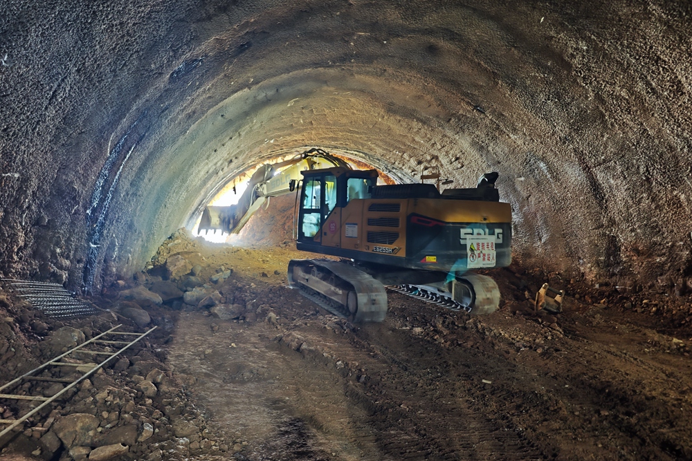 在江梓隧道左洞的內(nèi)部,也同時(shí)迎來了激動人心的一刻。隨著挖掘機(jī)挖掘產(chǎn)生的巨大轟鳴聲在隧道內(nèi)回蕩,最后一塊巖石被精準(zhǔn)地挖掘開來,陽光透過新開的洞口灑進(jìn)隧道,照亮了這片黑暗的空間。工人們紛紛停下手中的工作,歡呼雀躍,慶祝這一時(shí)刻的到來。江梓隧道左洞的順利貫通,為項(xiàng)目后續(xù)耙齒嶺大橋梁板運(yùn)輸及安裝提供了有力保證,為整體工程的推進(jìn)奠定了堅(jiān)實(shí)基礎(chǔ)。江梓隧道右洞的施工也在緊張施工中,預(yù)計(jì)于8月份貫通。