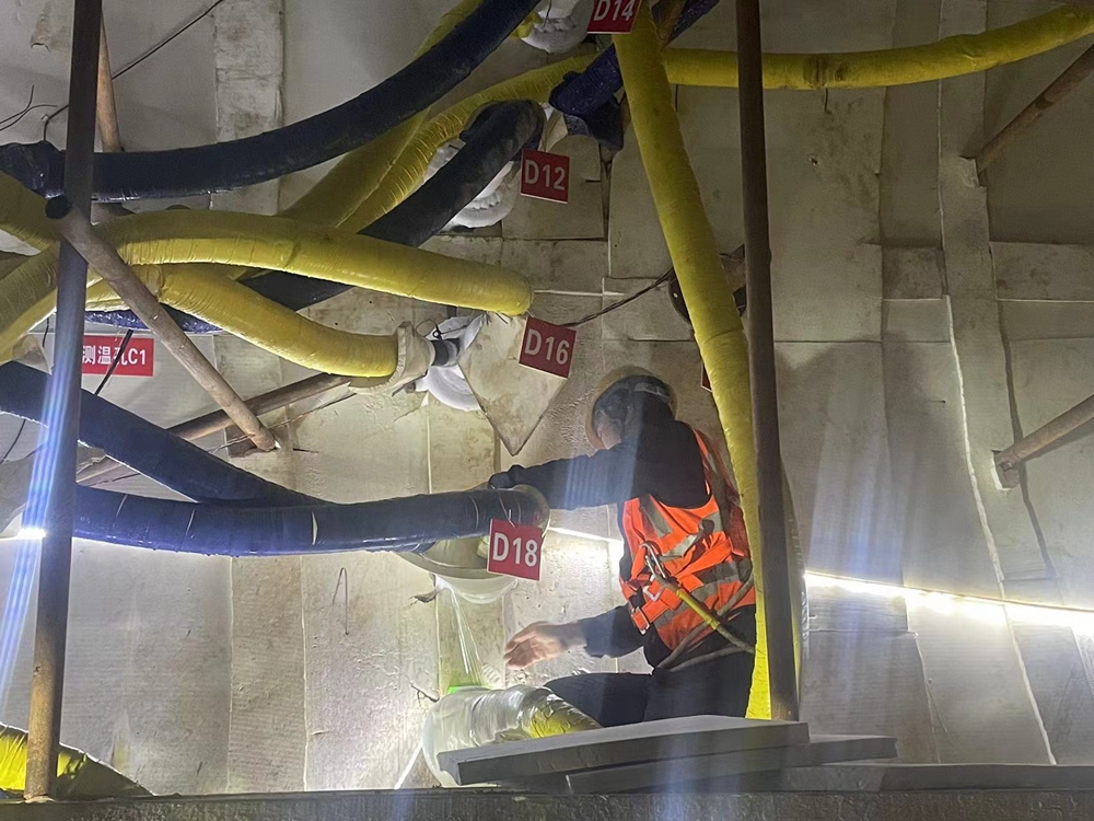 “形象地說,冷凍系統(tǒng)就好似一個不停機的冰箱,冷凍鹽水始終在-30℃左右把土體冷凍成堅硬的‘冰棍’,增加其強度和穩(wěn)定性。同時這種人工制冷技術適應面廣、安全可靠、污染性小,而且完全不用抽排地下水,一定程度上也減少了地下水資源的浪費”,項目負責人宋廣輝介紹。