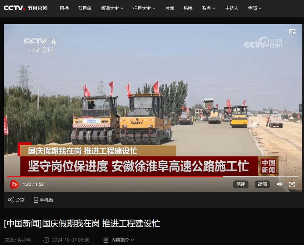 國慶當日,公司特別策劃推出《從路橋 看大美中國·江河篇:大江大河 萬里奔騰》主題微視頻,獲央廣網關注轉發(fā),各平臺瀏覽量達到67萬余次,實現(xiàn)刷屏效應。國慶假期前后,公司參建的合肥新橋國際機場綜合交通中心、徐淮阜高速公路、宣涇高速公路、合周高速公路、淮桐高速、G206項目進度不斷刷新,中央廣播電視總臺、新華社、央廣網、安徽衛(wèi)視、中安在線等主流媒體密切關注報道,各平臺報道累計瀏覽量超240余萬次,進一步提升了公司的知名度、美譽度和影響力。