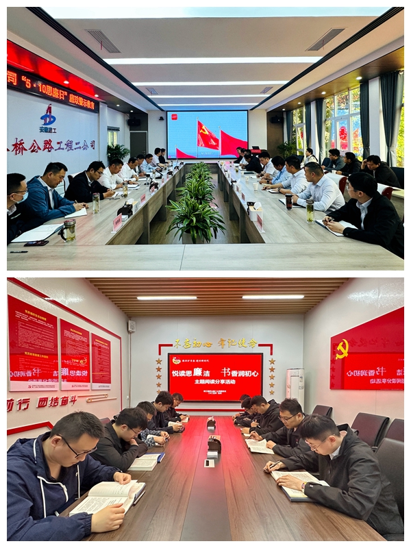 為深入貫徹新時代廉潔文化建設要求,推動“清風路橋”廉潔文化品牌深入人心,公路二公司5月份緊扣“思廉日”活動要求,立足生產經營實際,陸續(xù)開展沉浸式廉潔教育、學習研討、家庭助廉等活動,進一步強化黨員干部廉潔自律意識,為奮戰(zhàn)二季度經濟指標任務注入強勁“廉動力”。