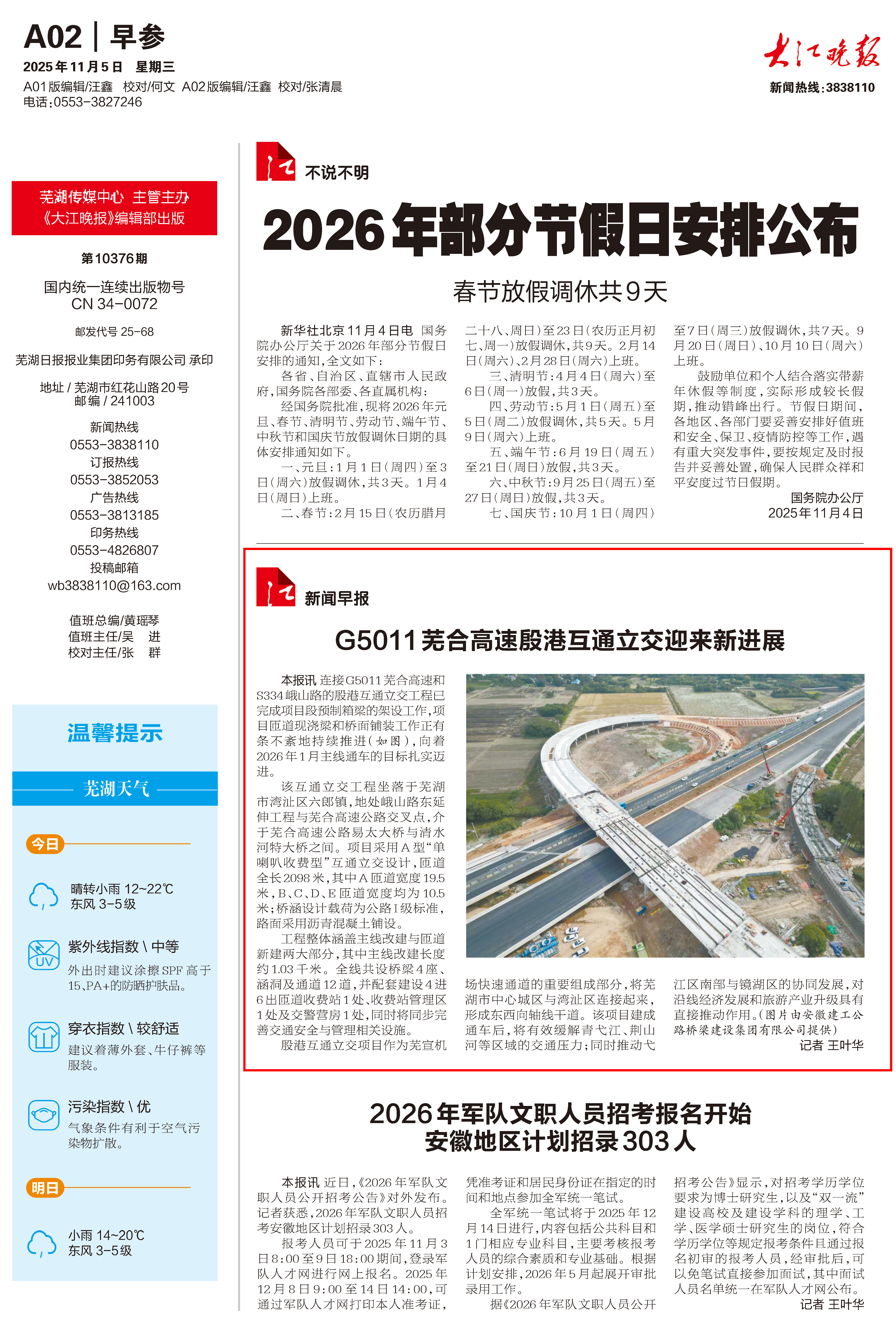 【名媒聚焦】大江晚報(bào)、蕪湖新聞網(wǎng):G5011蕪合高速殷港互通立交迎來(lái)新進(jìn)展