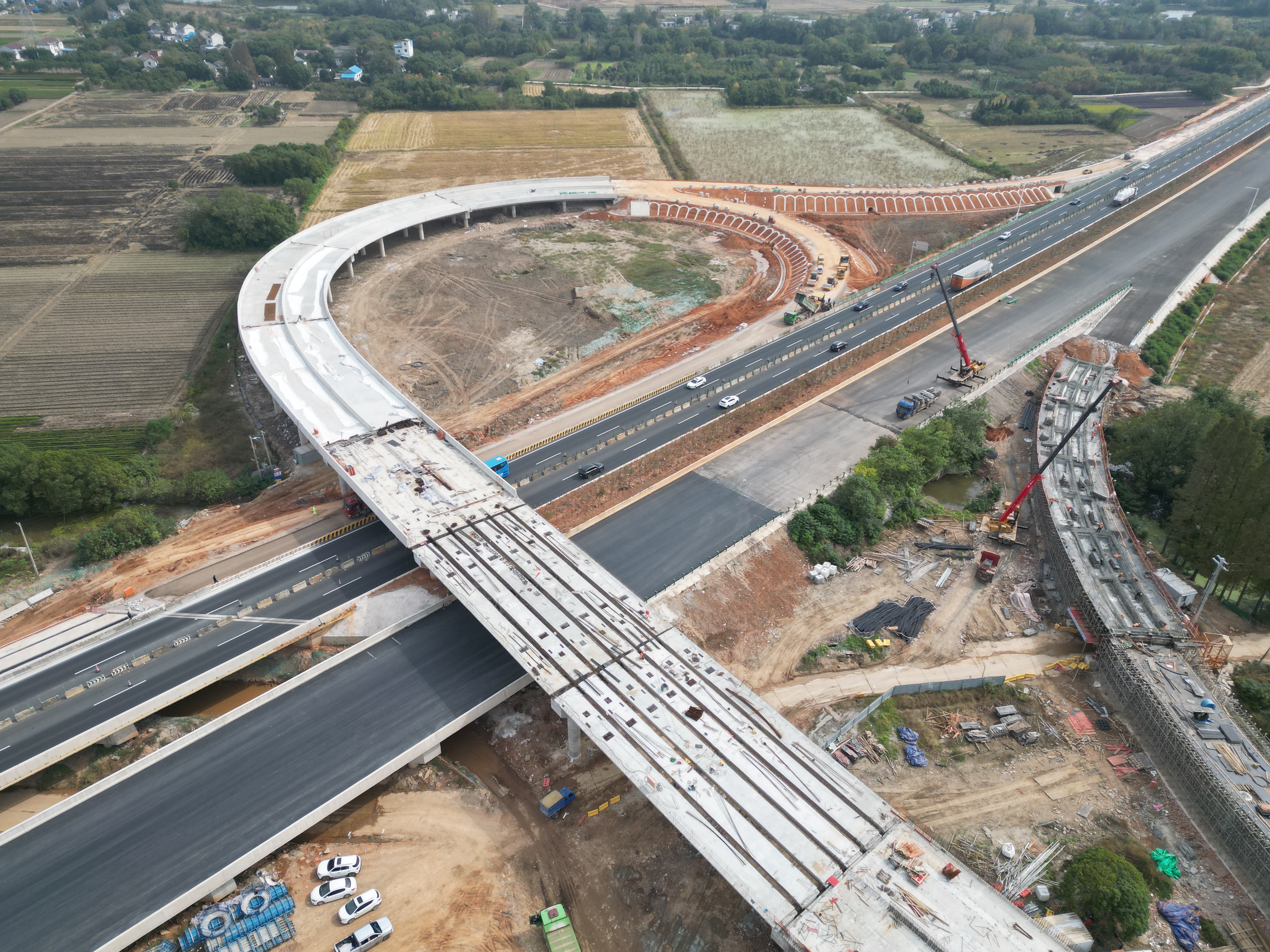 連接G5011蕪合高速和S334峨山路的殷港互通立交工程已完成項(xiàng)目段預(yù)制箱梁的架設(shè)工作,項(xiàng)目匝道現(xiàn)澆梁和橋面鋪裝工作正有條不紊地持續(xù)推進(jìn),向著2026年1月主線通車(chē)的目標(biāo)扎實(shí)邁進(jìn)。