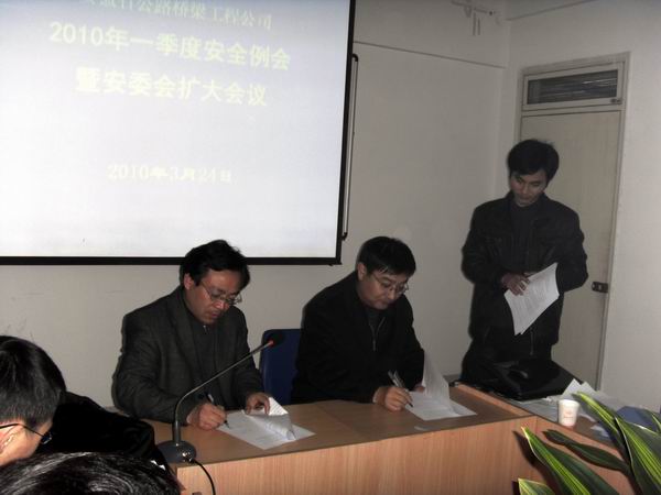 324下午,公司在四樓會議室召開了2010年一季度安全例會暨安委會擴大會議,公司安委會成員、直屬單位負責人、項目經(jīng)理及專職安全員共32人參加了此次會議。會議由公司副總經(jīng)理盛明宏主持。