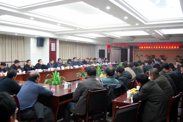 座談會(huì)開(kāi)始前,會(huì)場(chǎng)播放了公司宣傳片,展示公司二十五年來(lái)的發(fā)展歷程。座談會(huì)由副總經(jīng)理盛明宏主持。總經(jīng)理助理傅月斌通報(bào)了公司2010年施工總體情況。公司分管領(lǐng)導(dǎo)、各部門(mén)負(fù)責(zé)人、項(xiàng)目經(jīng)理分別作了發(fā)言。黨委書(shū)記陳光磊指出合作共贏、共同發(fā)展是公司永久追求的目標(biāo),安徽路橋的業(yè)績(jī)也凝聚著合作隊(duì)伍的努力;合作共贏不僅是要經(jīng)濟(jì)利益,更要追求社會(huì)效益;公司各級(jí)對(duì)合作隊(duì)伍的真誠(chéng)服務(wù)是職責(zé)所在,合作隊(duì)伍認(rèn)真履約、堅(jiān)強(qiáng)給力,就是對(duì)公司工作的最大支持。陳書(shū)記還表示目前項(xiàng)目已建立了支部、職工小家、職工書(shū)屋等,歡迎合作隊(duì)伍積極參加,享受權(quán)利。