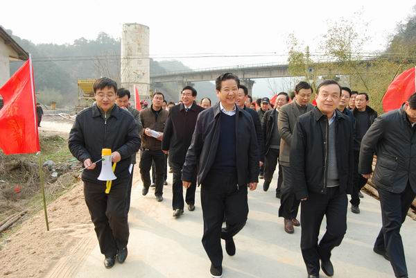 4日上午,黃省長一行來到黃祁高速08標視察。黃省長聽取了項目有關(guān)情況介紹,對該項目建設(shè)給予了高度評價,并就該項目跨鐵路施工方案與建設(shè)單位交換了意見,要求做好協(xié)調(diào)服務(wù)工作,確保工程早日建成,早日發(fā)揮作用。