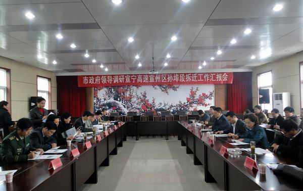 進(jìn)行現(xiàn)場(chǎng)了解之后,虞市長(zhǎng)立即在孫埠鎮(zhèn)政府主持召開(kāi)了相關(guān)工作會(huì)議。會(huì)議過(guò)程中,虞市長(zhǎng)認(rèn)真聽(tīng)取了孫埠鎮(zhèn)黨委史書(shū)記、鎮(zhèn)政府胡鎮(zhèn)長(zhǎng)的工作匯報(bào)和我部項(xiàng)目經(jīng)理張慶書(shū)所作的有關(guān)施工進(jìn)展情況以及當(dāng)前面臨的重大客觀困難的情況介紹。隨后立即組織了討論解決問(wèn)題的對(duì)策。虞市長(zhǎng)指出:作為政府方面,宣城市交通局、宣州區(qū)政府以及孫埠鎮(zhèn)政府必須從宣城市大局發(fā)展的角度,提高認(rèn)識(shí)、明確責(zé)任、開(kāi)通思路、多想辦法、強(qiáng)化措施,保證在月底前完成宣寧高速02標(biāo)段紅線(xiàn)內(nèi)房屋拆遷工作,為安徽省公路橋梁工程公司提供一個(gè)暢通、穩(wěn)定的施工環(huán)境!