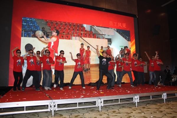 音域?qū)拸V,音色純正的男生獨(dú)唱《一生中最愛(ài)》,感情豐沛,對(duì)公司特有的情懷溢于言表;來(lái)自江西撫吉高速項(xiàng)目的歌曲串燒極具舞臺(tái)表現(xiàn)力,唱出了對(duì)公司的每位兄弟姐妹的美好祝愿;十年風(fēng)雨共濟(jì),十年不離不棄,宣寧項(xiàng)目自編自演的光影節(jié)目《十年》,黑白的影像,鏗鏘的獨(dú)白,展現(xiàn)了公司十年光輝歷程及對(duì)未來(lái)美好前景的祝愿,展現(xiàn)了鑄就恢弘藍(lán)圖的飽滿信心,引起了現(xiàn)場(chǎng)全體觀眾的內(nèi)心共鳴;后勤隊(duì)合唱《眾人劃槳?jiǎng)澊蟠?,讓我們感覺(jué)到了團(tuán)結(jié)就是力量,離夢(mèng)想的步伐將會(huì)越來(lái)越近;宣貍五標(biāo)青年團(tuán)隊(duì)引領(lǐng)潮流,團(tuán)隊(duì)風(fēng)采展示融合時(shí)下流行的《江南style》舞蹈,引爆全場(chǎng),將聯(lián)誼會(huì)氣氛推向高潮;一首《牽手》,真情流露,溫柔而富有感性;租賃公司情景劇《瘋狂走四方》更是搞笑吐糟,引起陣陣掌聲,再一次讓現(xiàn)場(chǎng)氣氛推向高潮。