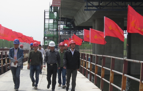 督查中,何局長指出,懷洪新河二號特大橋工程施工難度大、任務重、時間緊,在加快建設的同時更要重視安全管理和工程質(zhì)量。在安全管理上,要從以人為本的角度做好安全工作,注重預防;在質(zhì)量管理上,要建立質(zhì)量控制長效機制。何局長強調(diào),省路橋公司作為一個負責任、有實力的國有企業(yè),在施工安全、工程質(zhì)量及項目進度上要自我加壓,提高標準,進一步提升企業(yè)品牌影響力。