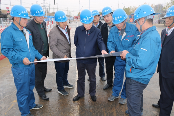 集團(tuán)公司總經(jīng)理助理、工程管理部主任童宗勝,公司董事長(zhǎng)、黨委書記、總經(jīng)理孫學(xué)軍,副總經(jīng)理錢申春等陪同。