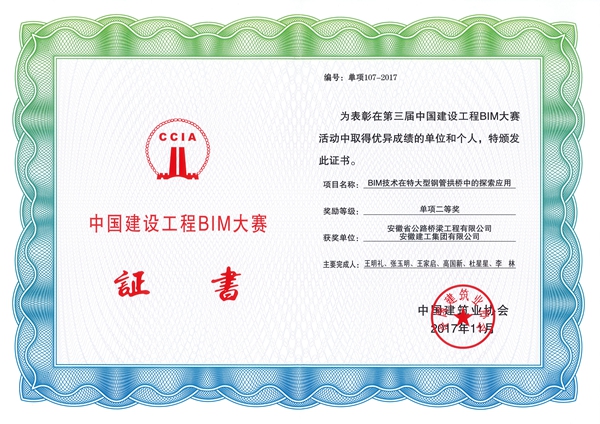 近日,在廈門召開的中國建設(shè)工程BIM技術(shù)成果經(jīng)驗(yàn)交流會暨第三屆全國建設(shè)工程BIM大賽成果展示會上,由公司選送的《BIM技術(shù)在特大型鋼管拱橋中的探索應(yīng)用》成果,在全國794項(xiàng)BIM參賽成果中脫穎而出,以優(yōu)異的成績榮獲“第三屆中國建設(shè)工程BIM大賽”單項(xiàng)二等獎。