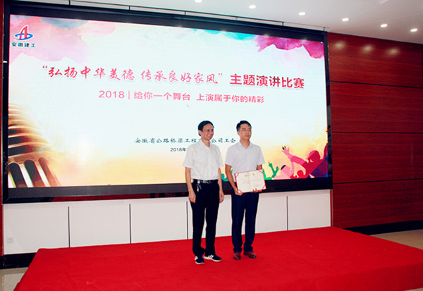 好家風(fēng)溫潤心田,好家訓(xùn)世代傳承。7月20日下午,公司“弘揚(yáng)中華美德 傳承良好家風(fēng)”主題演講比賽在市政分公司多媒體會議室舉辦。來自公司各個崗位的9名參賽選手聲情并茂,娓娓道來,以真摯的情感、樸實(shí)的語言談家風(fēng)、聊家事、話家常,詮釋出當(dāng)代路橋人的“好家庭、好家風(fēng)、好故事”。