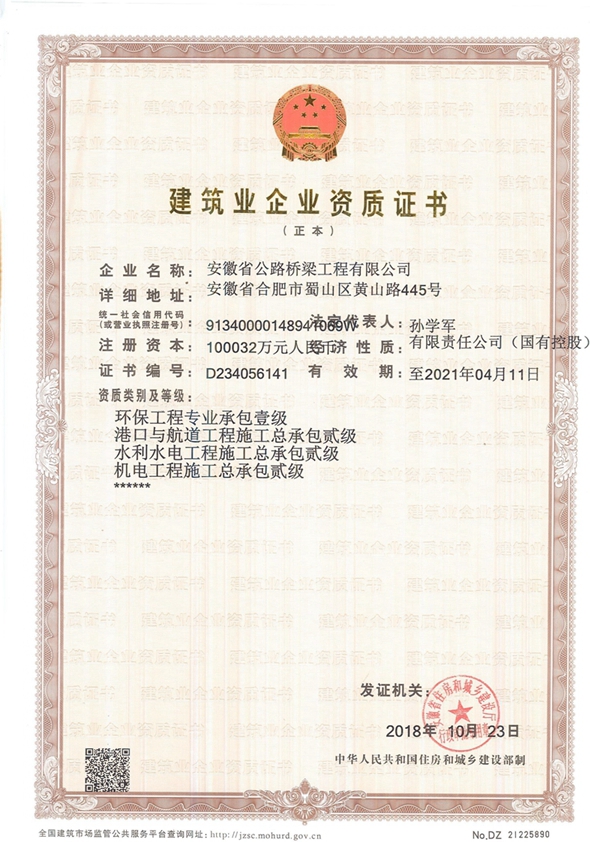 10月23日,公司環(huán)保工程專業(yè)承包壹級、水利水電工程施工總承包貳級、機電工程施工總承包貳級三項資質順利通過安徽省住房和城鄉(xiāng)建設廳審查核準。三項新資質的取得為公司進一步拓展非公路施工業(yè)務,實現經營業(yè)務多領域發(fā)展打下了基礎。