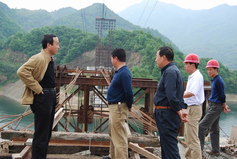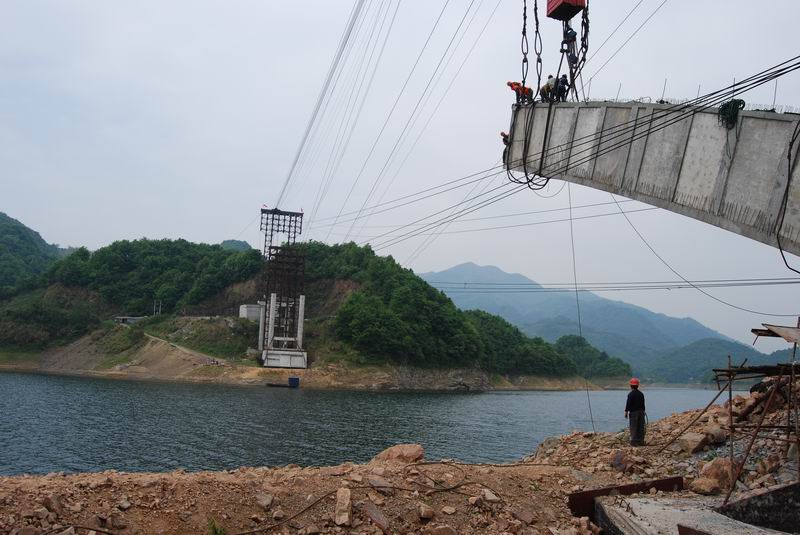 2009年4月30日上午10:30,寧靜的大別山革命老區(qū)金寨縣梅山水庫上空傳來了清脆的鞭炮聲,絢爛的禮花把青山綠水映襯得更加多姿。備受社會關注的金寨縣金桃大橋主橋第二孔,即桃?guī)X跨第一片重達75T的箱拱梁被緩緩吊起,在眾目凝視下穩(wěn)穩(wěn)就位,為“五.一”國際勞動節(jié)獻上了一份厚禮。這預示著金桃大橋又取得了一個實質(zhì)性的進展和階段性的勝利。金寨縣交通局張傳旭局長、王學軍副局長、總監(jiān)賈淳忠等在公司總經(jīng)濟師楊文柱的陪同下,現(xiàn)場觀看了整個吊裝過程。下午,金寨縣人大副主任石本德、縣委常委、常務副縣長趙權分別到場表示祝賀和慰問。