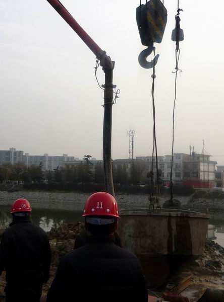 下午2時左右,鋼筋籠開始安裝。項目經(jīng)理李建成和工人一道細(xì)心的將鋼筋籠送至樁孔中。導(dǎo)管安裝完畢后,混凝土澆灌開始。到下午4時20分左右,宋斗灣路工程第一根樁澆注完畢,樁基成型。