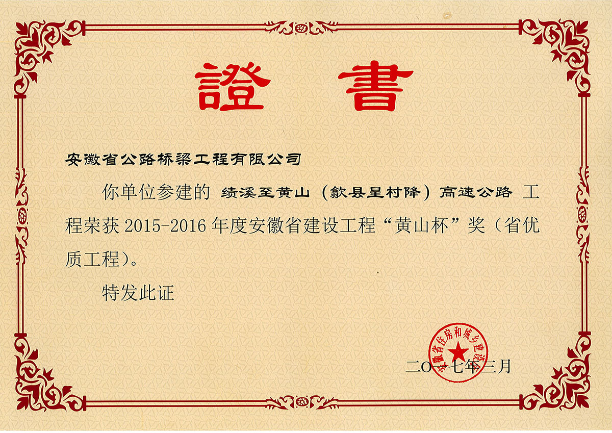 績溪至黃山高速公路項(xiàng)目-黃山杯(省優(yōu)質(zhì)工程獎(jiǎng))
