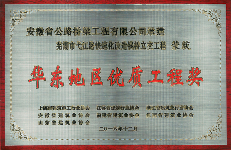 蕪湖錢橋立交工程-華東地區(qū)優(yōu)質(zhì)工程獎(jiǎng)