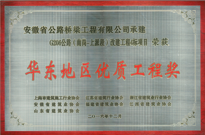 G206公路(南崗-上派段)改建工程4標(biāo)-華東地區(qū)優(yōu)質(zhì)工程獎(jiǎng)